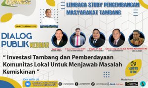 Webinar yang berlangsung pada Sabtu 26 Maret yang lalu tersebut mengusung tema “ Investasi Tambang dan Pemberdayaan Komunitas Lokal untuk Menjawab Persoalan Kemiskinan” .