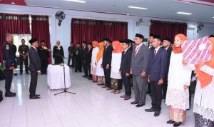 Jazirah Indonesia – Ketua Komisi Pemilihan Umum (KPU) Kota Tidore Kepulauan Abdullah Dahlan melantik dan mengambil sumpah 40 Anggota Panitia Pemilihan Kecamatan (PPK) se Kota Tidore Kepulauan, Rabu (4/1/2023).