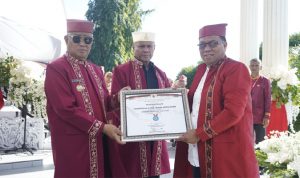 Penghargaan tersebut diserahkan kembali oleh Walikota Tidore Kepulauan Capt, H. Ali Ibrahim didampingi Wakil Walikota Tidore Kepulauan Muhammad Sinen kepada Sekretaris Daerah Kota Tidore Kepulauan Ismail Dukomalamo, di sela-sela Upacara peringatan Hari Pendidikan Nasional, di halaman Kantor Walikota Tidore, Selasa (2/5/2023).