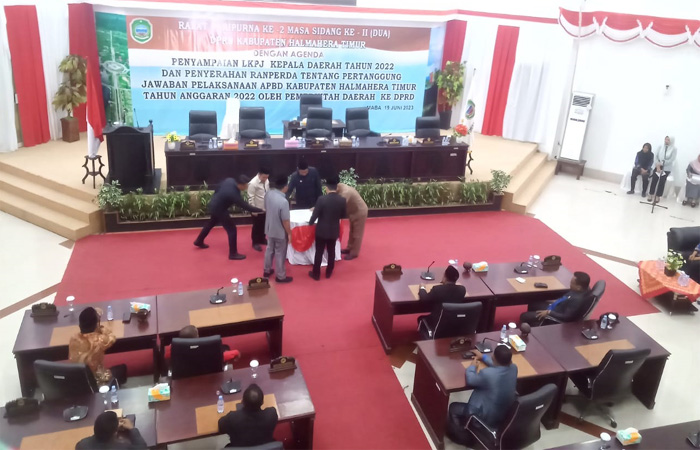 Penyampaian LKPJ tersebut melalui Rapat Paripurna Penyampaian LKPJ Bupati Tahun 2022, yang diselenggarakan Dewan Perwakilan Rakyat Daerah (DPRD) Haltim di ruang paripurna kantor DPRD Haltim.