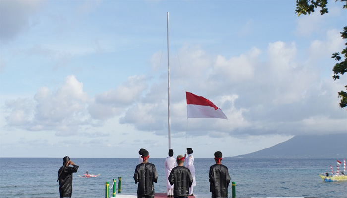Jazirah Indonesia – Masyarakat Mareku, Kecamatan Tidore Utara melaksanakan pengibaran bendera Merah Putih, di tanjung Mafutabe, Kelurahan Mareku Kecamatan Tidore Utara Kota Tidore Kepulauan Maluku Utara, Jumat, (18/8/2023).