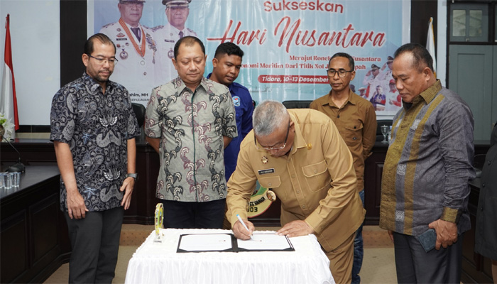 Penandatanganan MoU dilakukan oleh Walikota Tidore Kepulauan Capt. H. Ali Ibrahim dengan Direktur PT Berkah Moloku Kie Raha Propinsi Maluku Utara Andi Pravidia Saliman yang dilaksanakan di Ruang rapat Kantor Walikota, Selasa (12/11/2023).