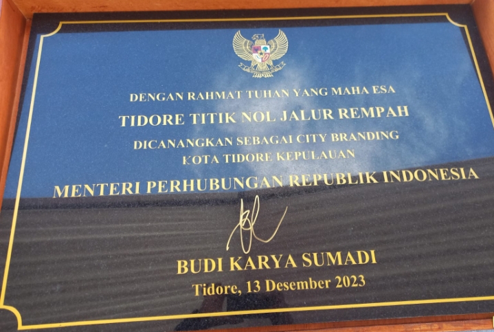 Penandatangan dicanangkan sebagai City Branding Kota Tidore Kepulauan oleh Menteri Perhubungan, Budi Karya Sumadi usai memberikan sambutan Hari Nusantara di Kawasan Wisata Pantai Tugulufa, Kota Tidore, Rabu (13/12/2023).