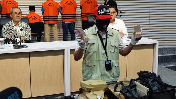 Uang tunai itu juga ditunjukkan dalam konferensi pers. Duit tersebut terdiri dari pecahan Rp 100.000.