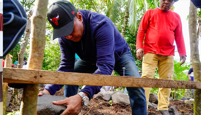 Pembangunan rumah Kakek Jafar Hainan dengan luas 5×4 itu diawali dengan pembuatan Fondasi yang dilakukan secara bergotong royong oleh sejumlah warga masyarakat dan dipimpin langsung oleh Wakil Wali Kota Tidore Kepulauan Muhammad Sinen, Sabtu (6/1/2024).