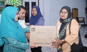 Jazirah Indonesia, Tidore – Untuk pengembangan ekonomi masyarakat, Pemerintah Kota Tidore Kepulauan melalui Dinas Sosial menyerahkan bantuan alat produksi roti berupa mixer roti kepada 160 pelaku usaha yang tersebar di empat kecamatan yang ada di Pulau Tidore.