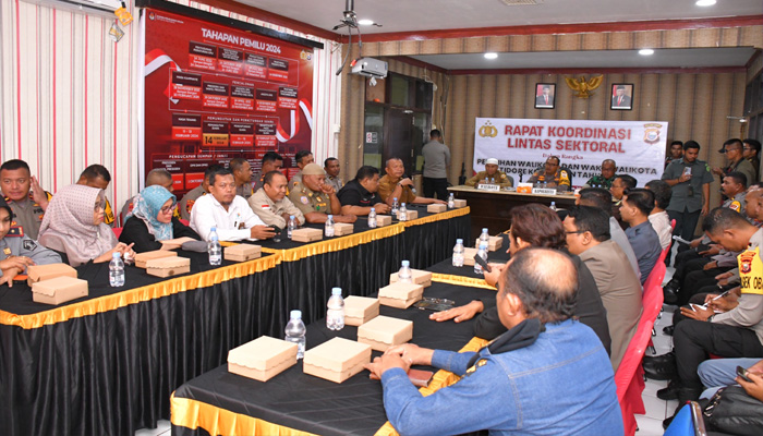 Apel gelar pasukan tersebut diawali dengan Deklarasi Pemilu Damai Tahun 2024 yang ditandai dengan penandatanganan komitmen bersama oleh Timses Bakal Calon, Forkopimda dan Instansi Vertikal. Usai apel gelar pasukan dilanjutkan dengan Rapat Koordinasi Lintas Sektoral.