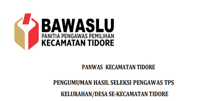 Jazirah Indonesia – Seluruh Panitia Pengawas Kecamatan (PPK) di Kota Tidore Kepulauan telah mengumumkan hasil seleksi penerimaan Pengawas Tempat Pemungutan Suara (PTPS).