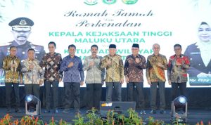 Kolom abu erupsi Gunung Dukono teramati berwarna putih dengan intensitas sedang hingga tebal ke arah barat daya dan barat.