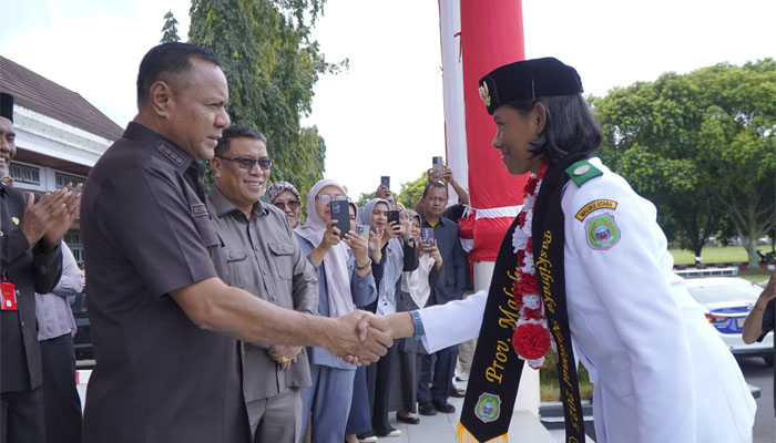 Jazirah Indonesia – Membawa nama Kota Tidore Kepulauan di Kancah Nasional, Beatrix Missy salah satu Anggota Paskibraka Tingkat Nasional Tahun 2025 asal Kota Tidore Kepulauan disambut dengan bangga dan diterima secara langsung oleh Wali Kota Tidore Kepulauan Muhammad Sinen di Kantor Wali Kota Tidore Kepulauan, Jumat (22/8/2025).